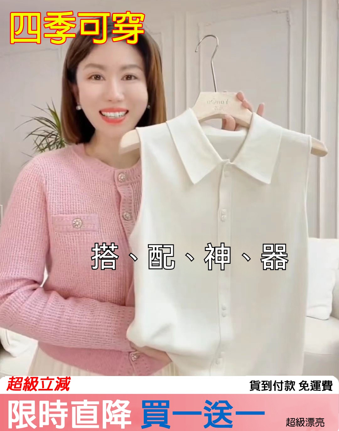 NT$1288【買一送一】polo領綿羊毛背心,柔軟親膚不起球,春夏秋冬四季可穿。一件小背心可以盤活你衣櫃,叠穿毛衣、搭配开衫、搭配光板毛衣、搭配V领毛衣等等,夏天还可以单穿!你的隱形鎧甲 已上線 這件藏著顯瘦心機 3D立體剪裁 視覺秒收腰詳情 - 七合一收納袋NT$949